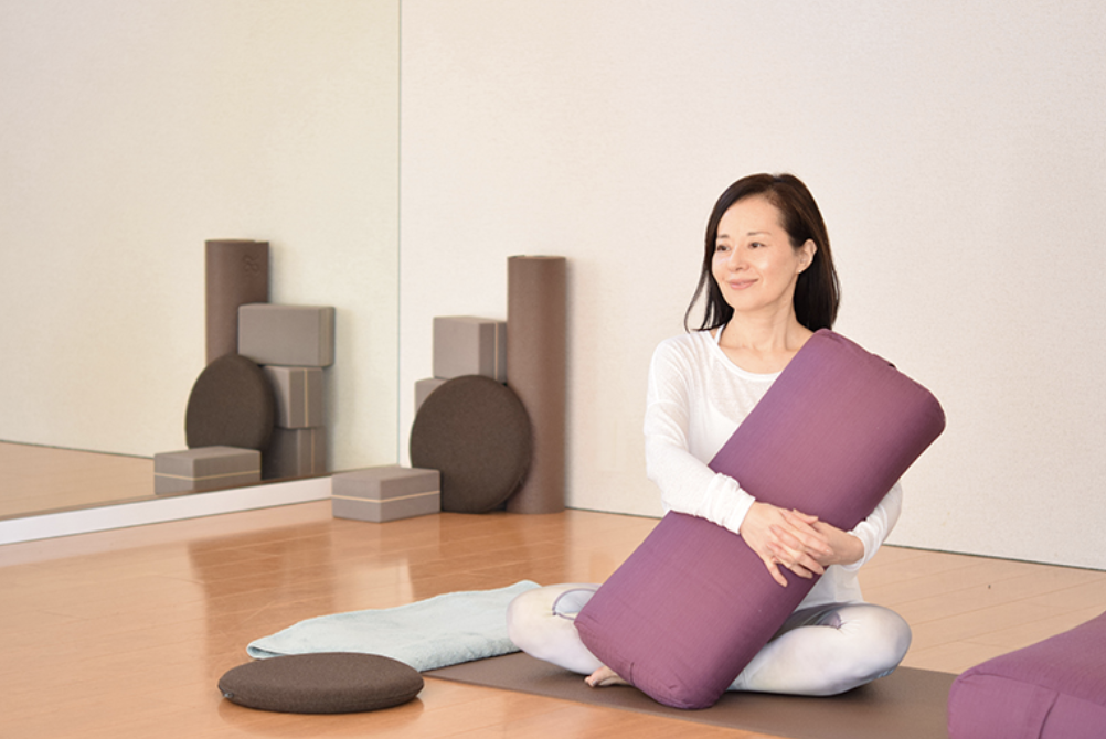 この講座ではヨガクッションを使い、体を心地よく支えながら深い呼吸と静かな時間を味わえるリストラティブヨガを取り入れています。